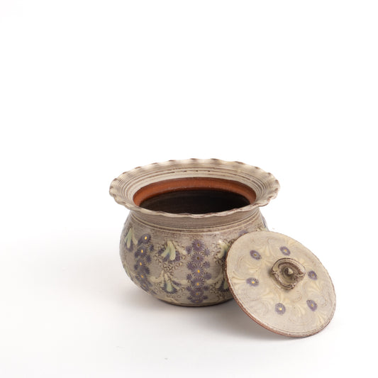 【清水焼】小蓋物 紫彩華紋 砂金袋形 陶楽