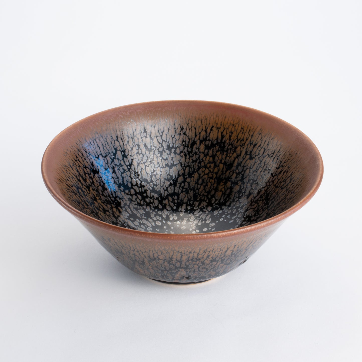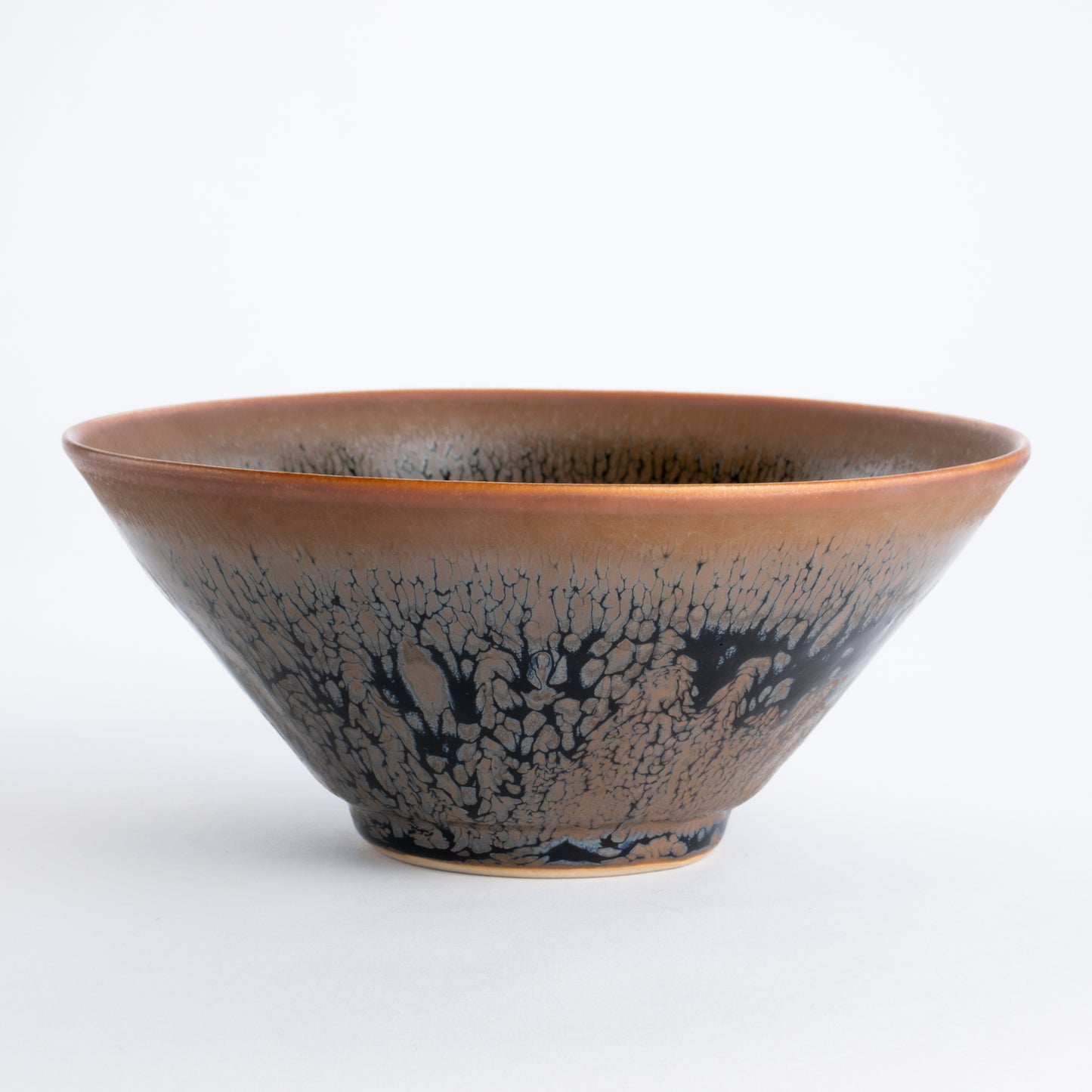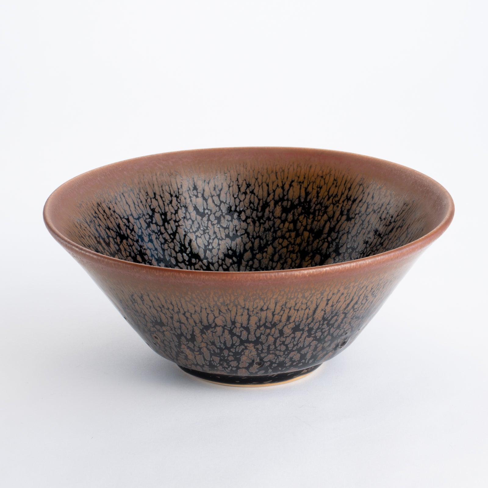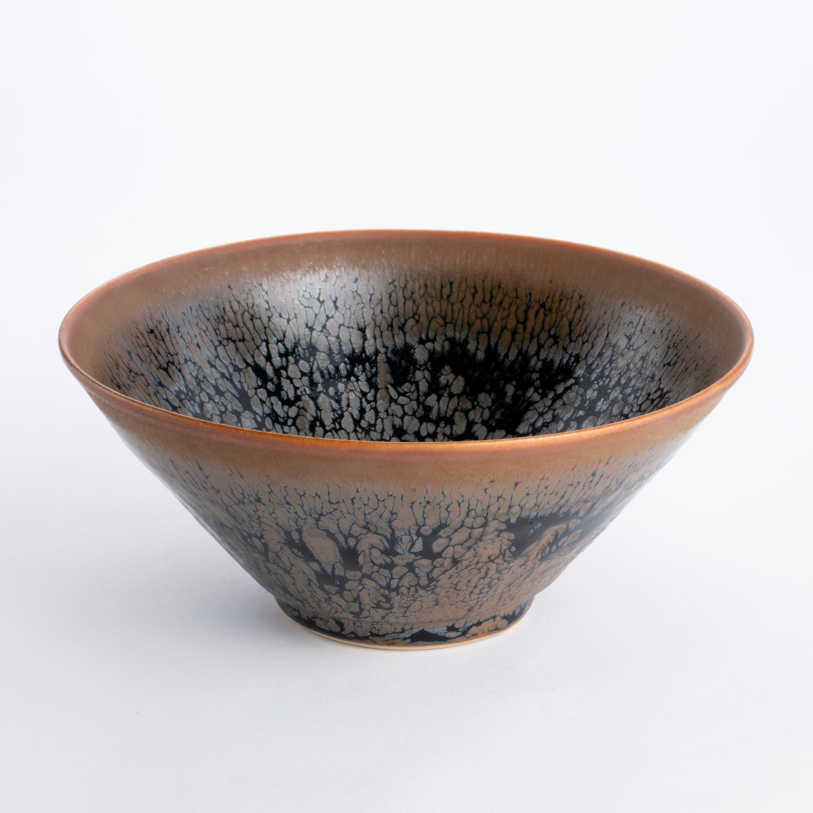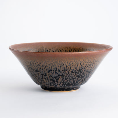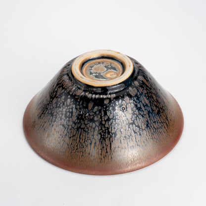 天目とは、鉱物を豊富に含む釉薬が焼成の過程で美しい模様へと変化する、古来中国より伝わる伝統的な焼き物の技法です。