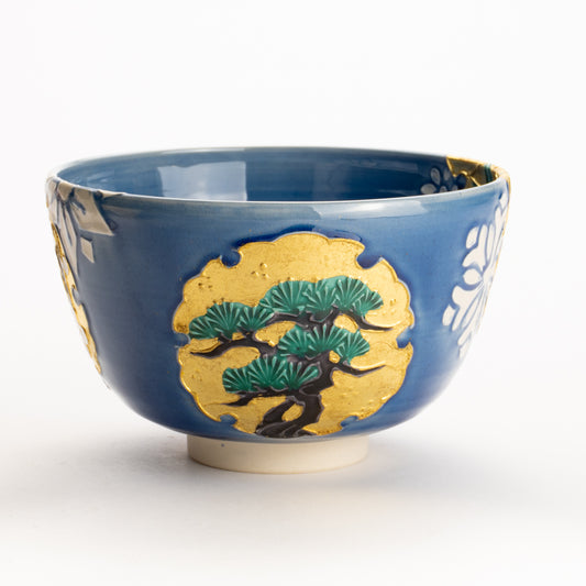 Matcha bowl -Pine tree ,wave, Japanese poem by Ichinyo
