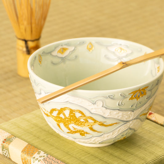 【清水烧】抹茶碗 交趾金箔彩 凤凰 一如作