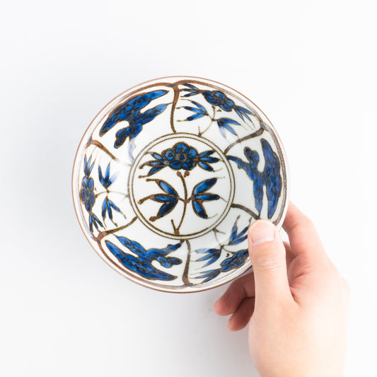 【清水烧】铁染鸟纹茶碗(大),岩花窑