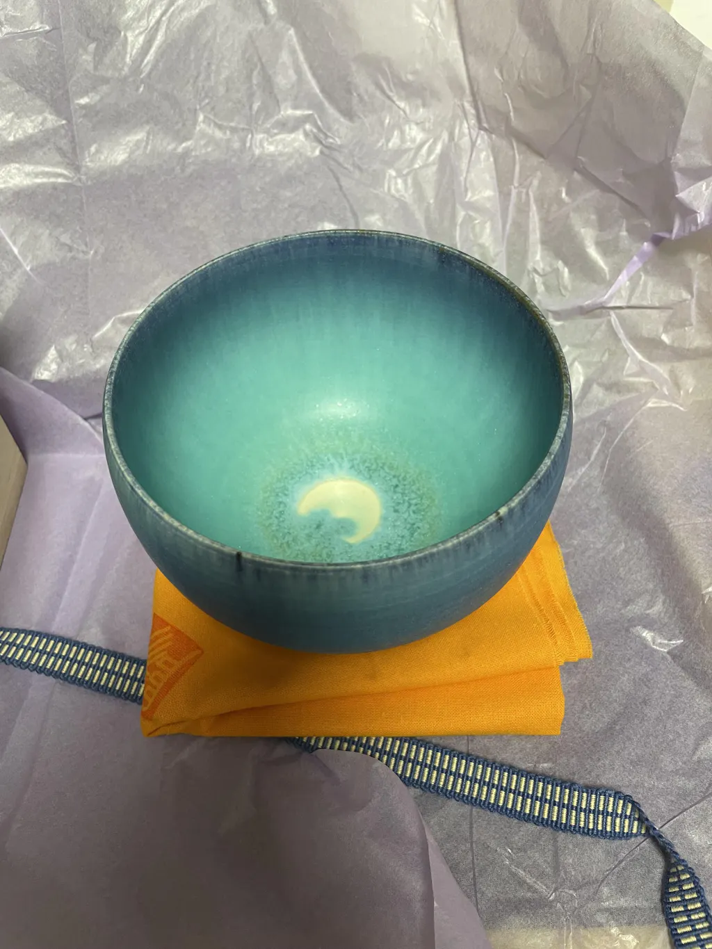 手に取ると外側のポコっとした水滴のような模様が当たり温かみがあります。料理を食べ終えたら、中心からきらきら色のかけらの世界が現れます。陶器って素晴らしいと初めて感じました。