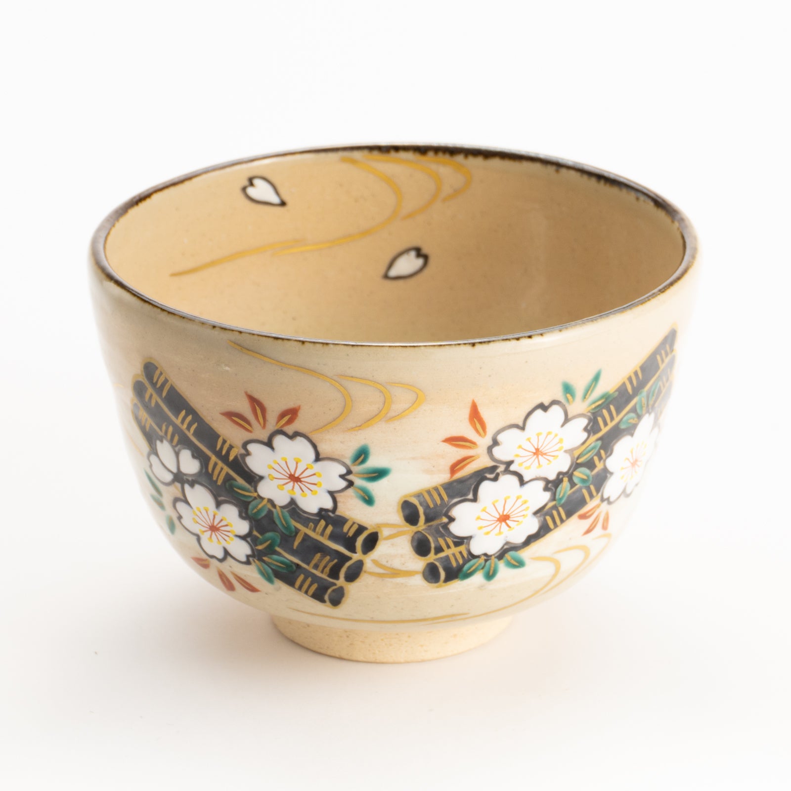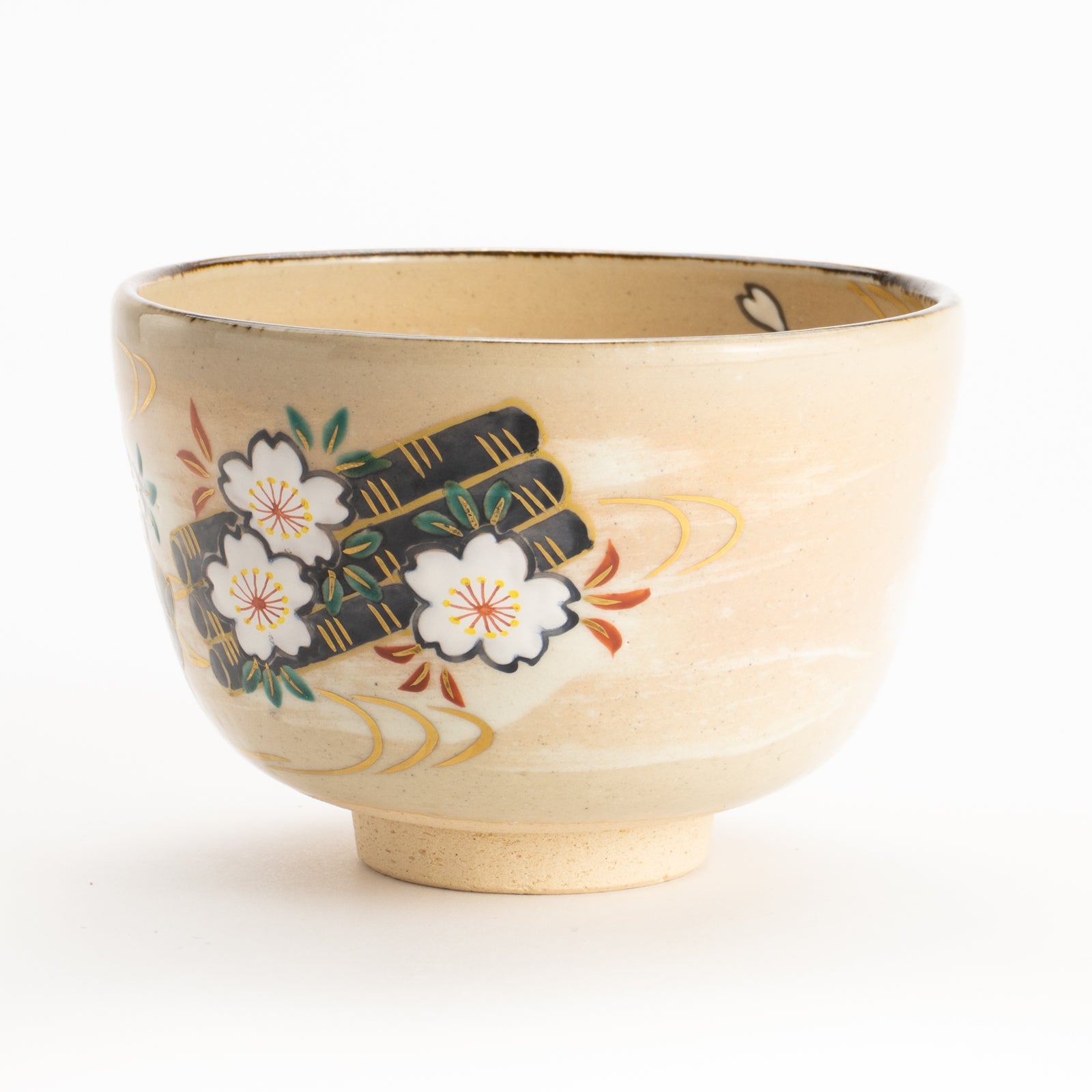 【清水烧】抹茶碗 灰釉内金 樱花 良二