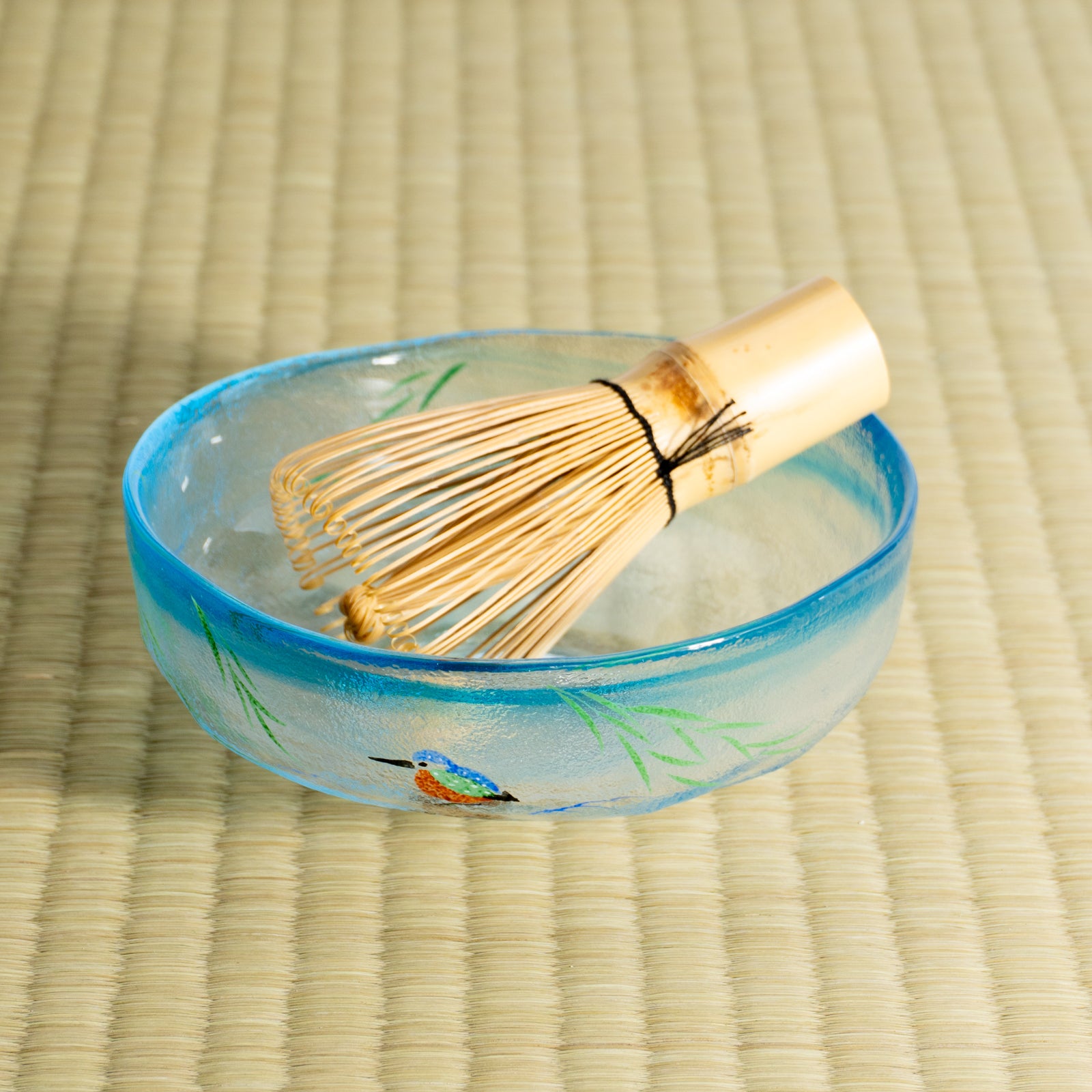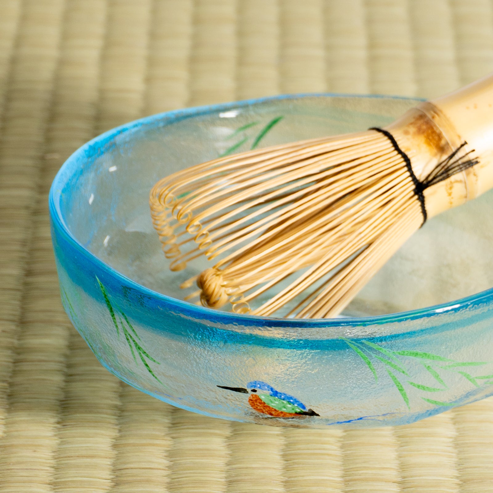 这些夏季抹茶碗由透明玻璃制成,每个碗都是单独绘制的。