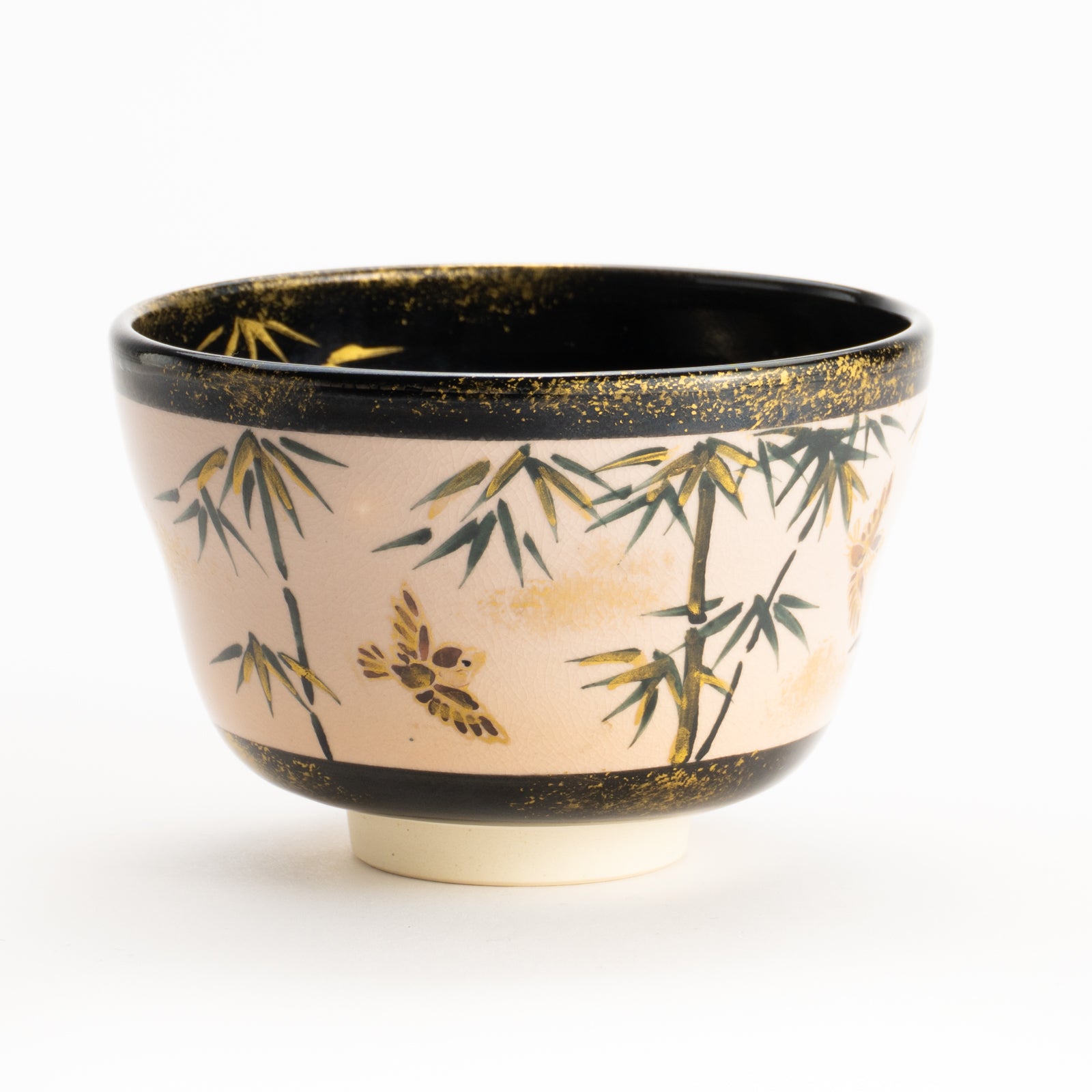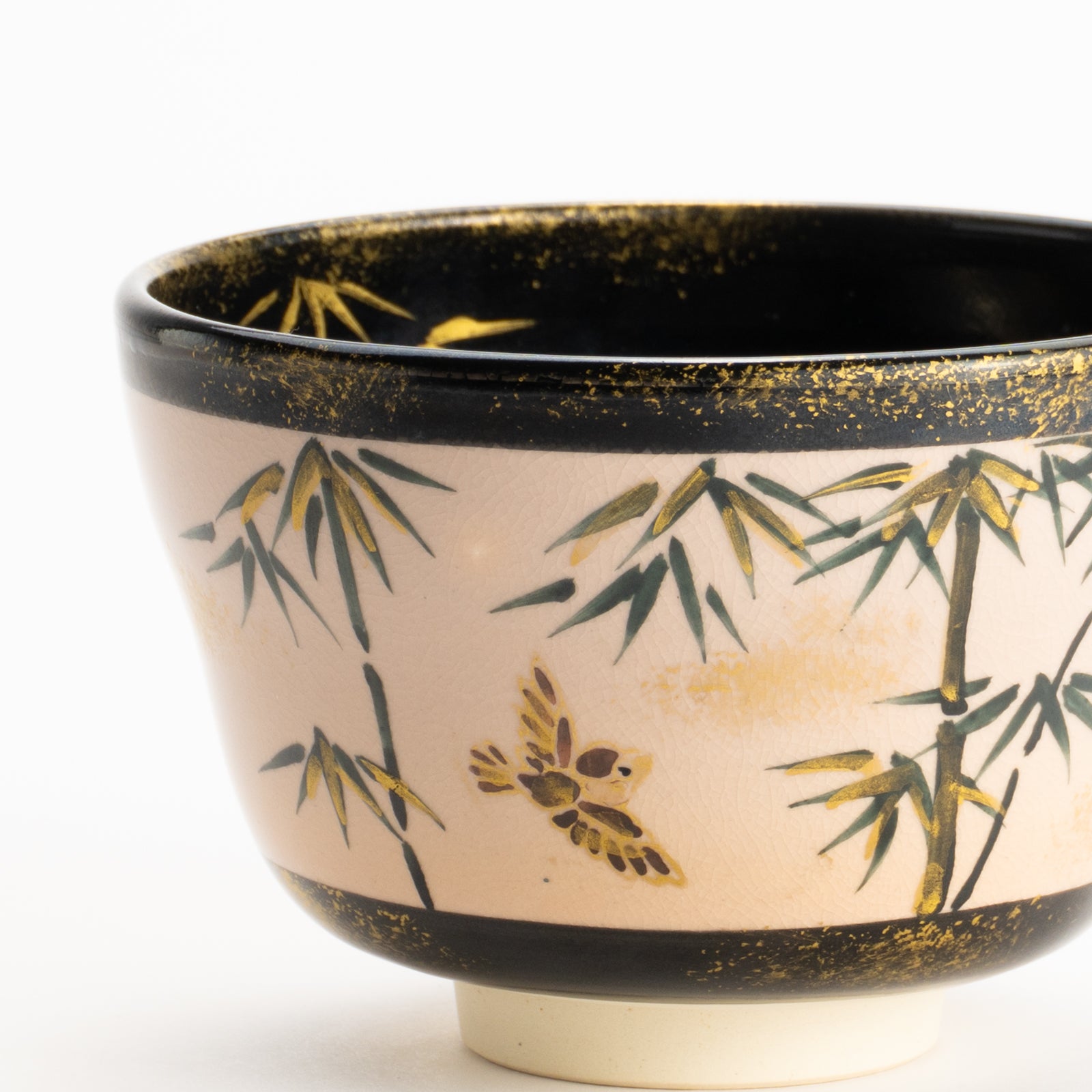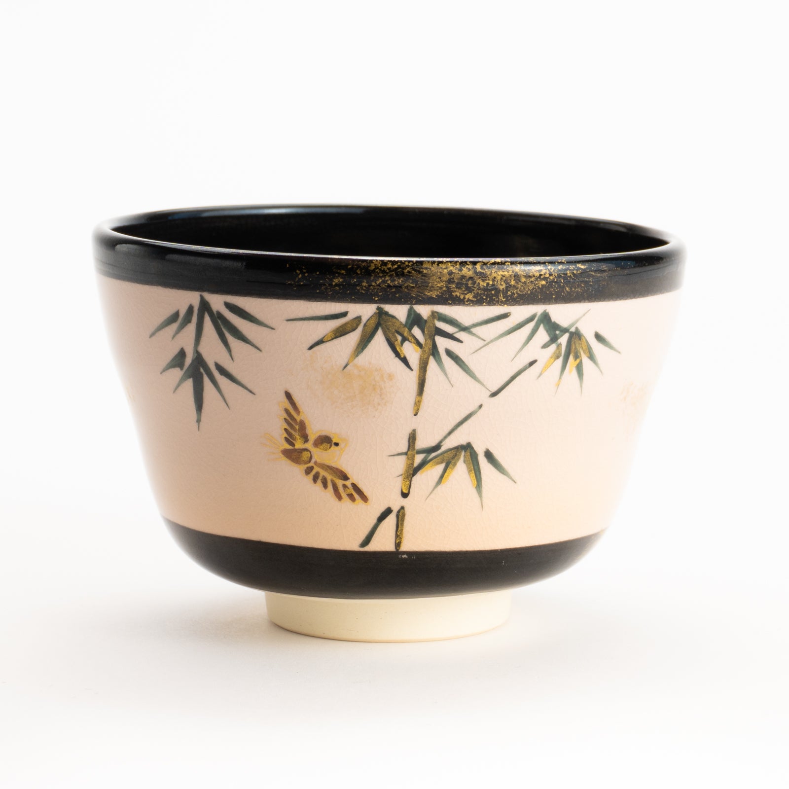 【清水烧】抹茶碗 金彩 竹与麻雀 海峰