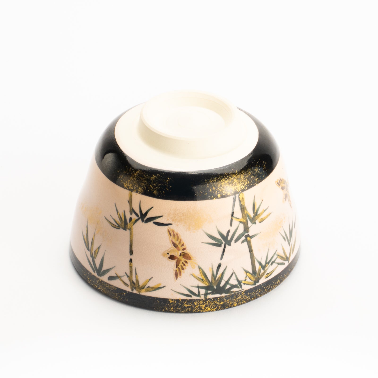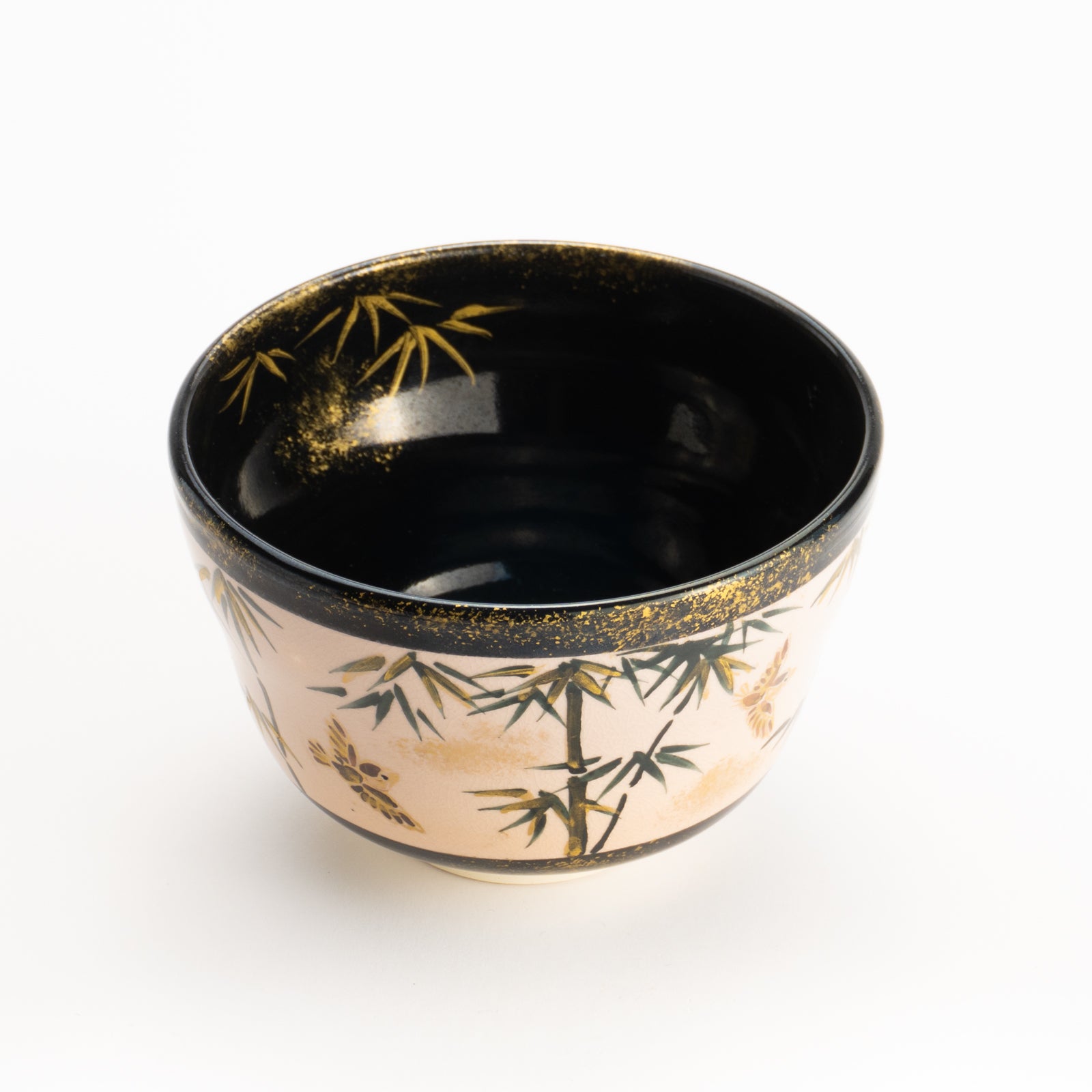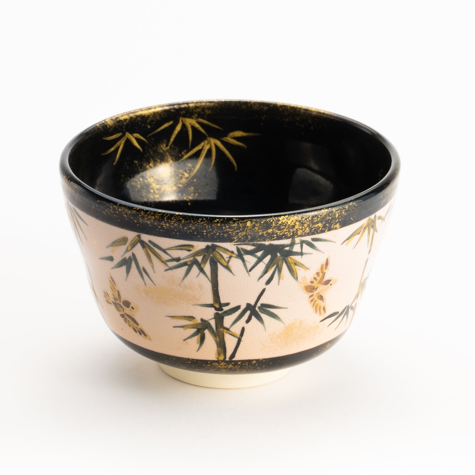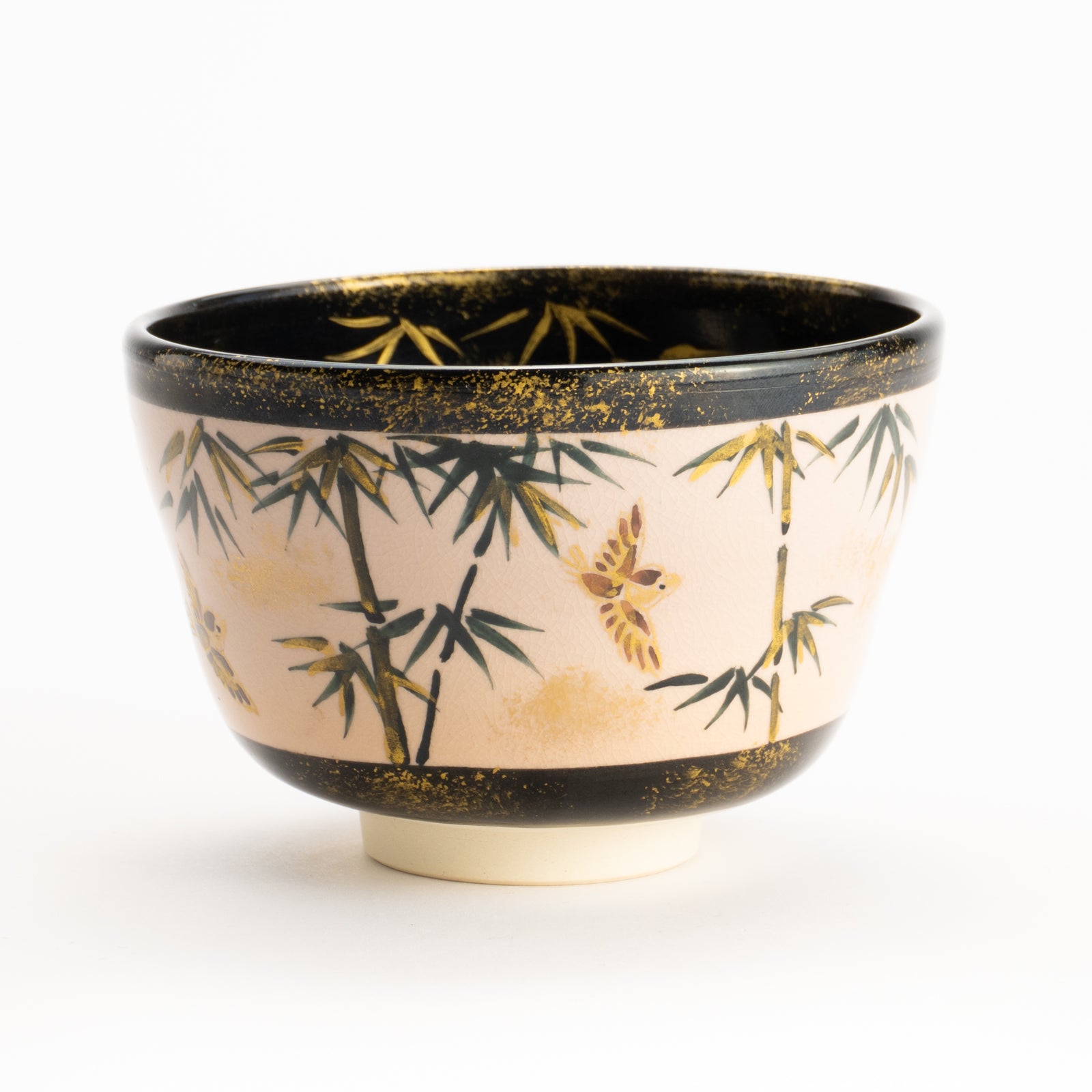 【清水烧】抹茶碗 金彩 竹与麻雀 海峰