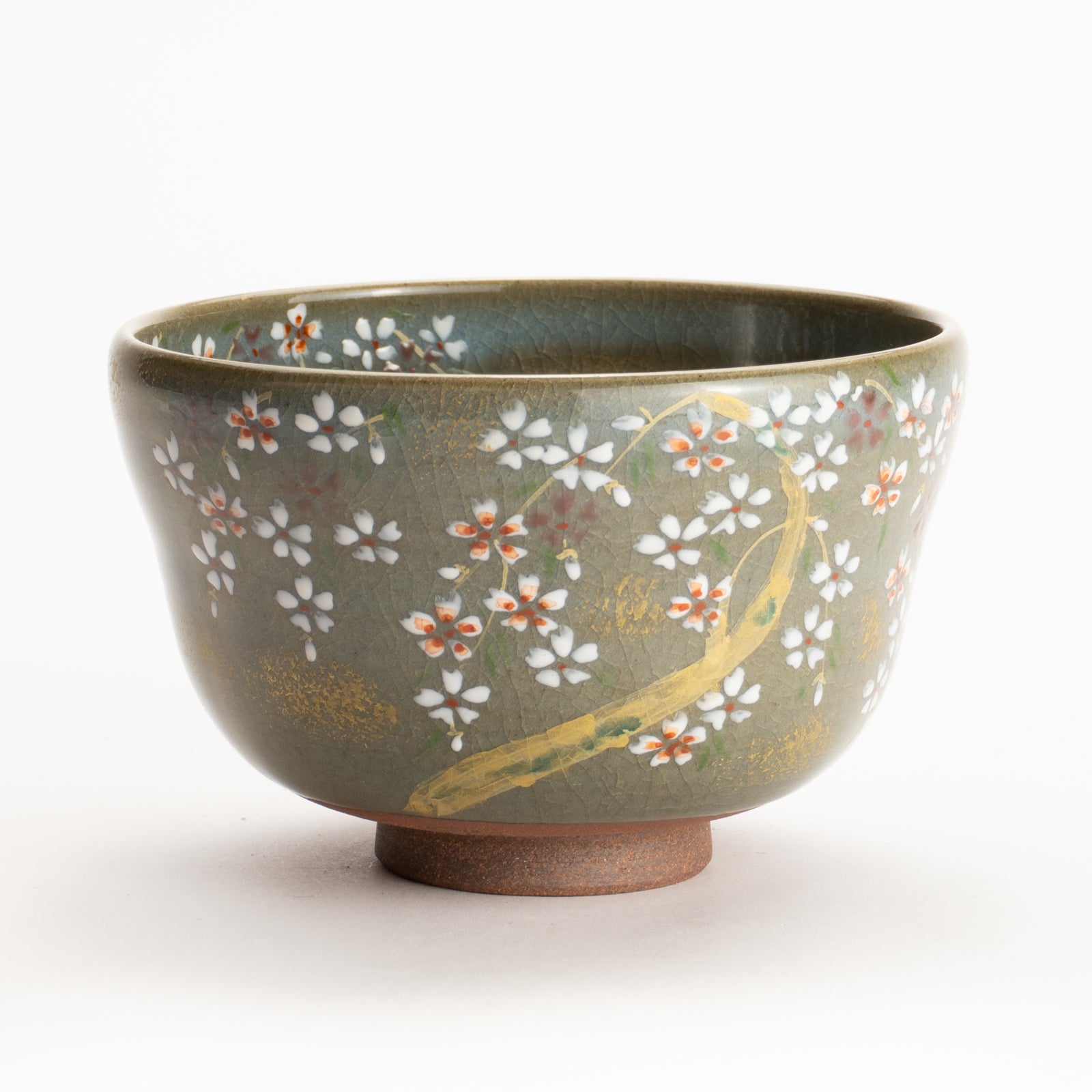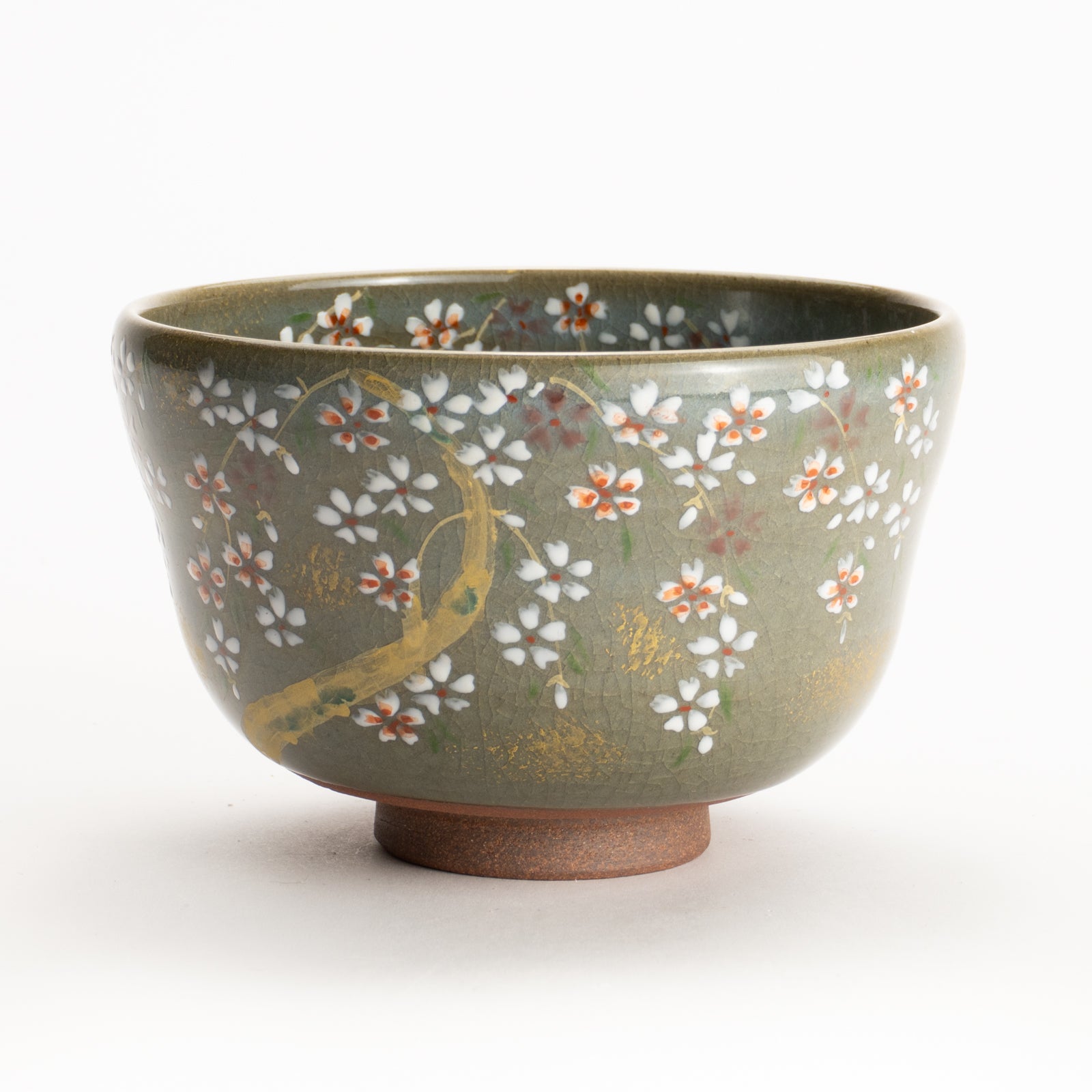 【清水烧】抹茶碗 伊罗保釉 枝垂樱 海峰