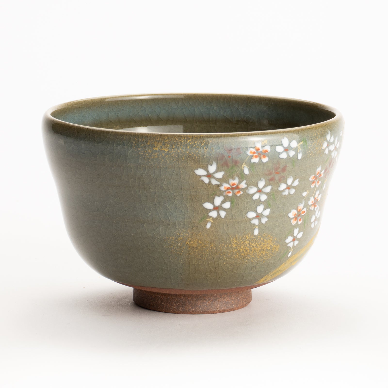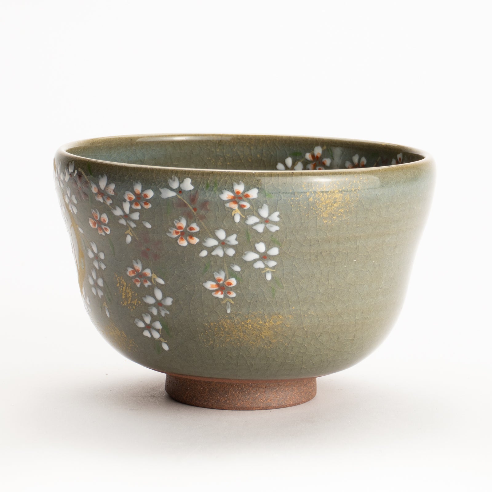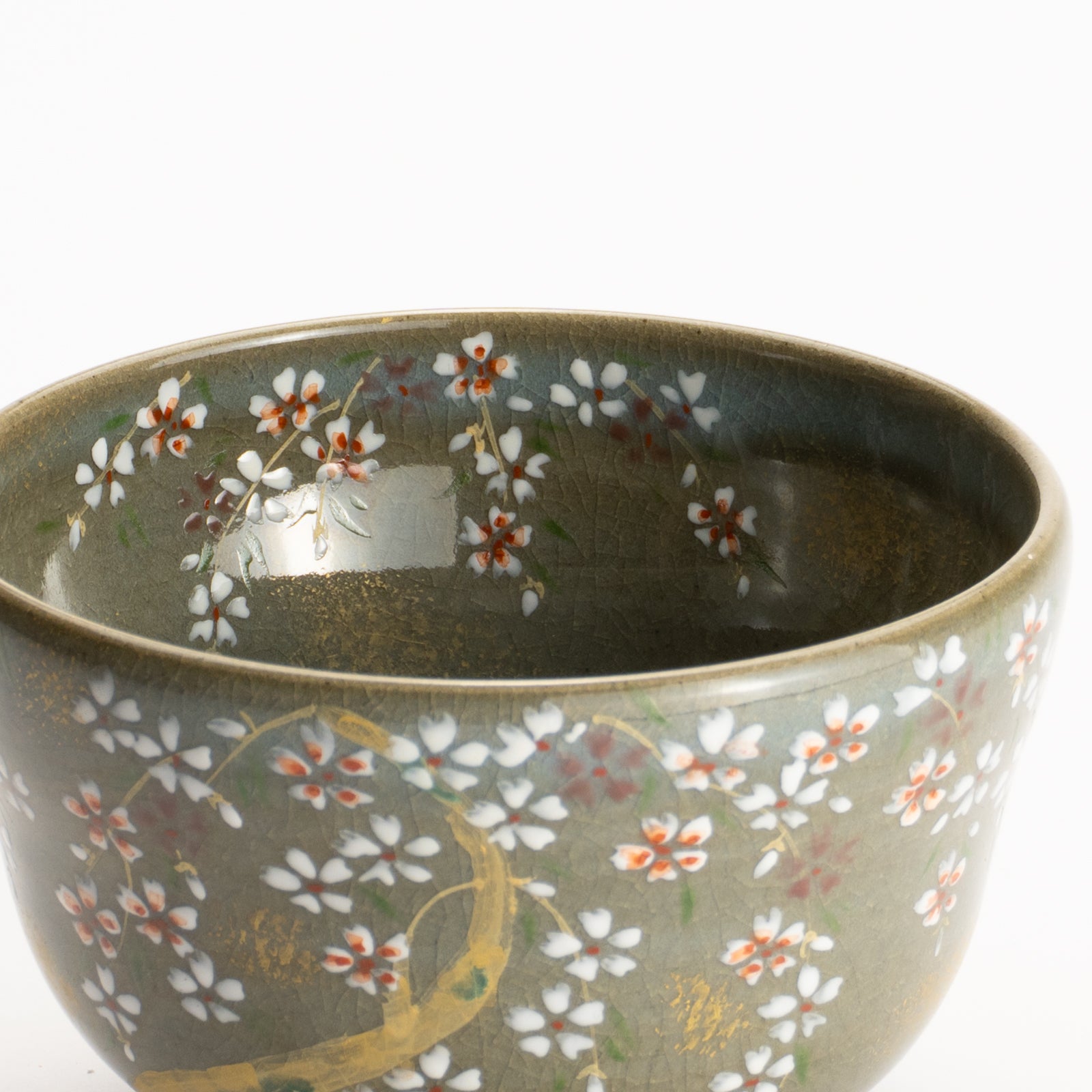 【清水烧】抹茶碗 灰釉内金 樱花 良二