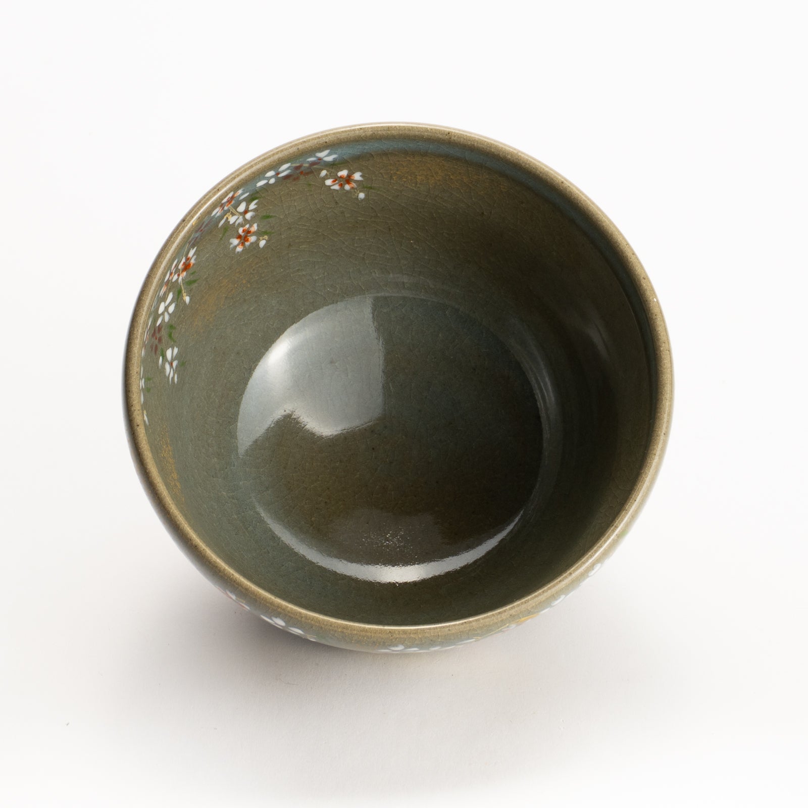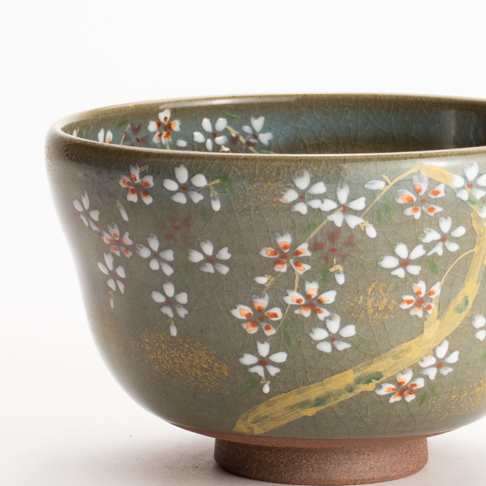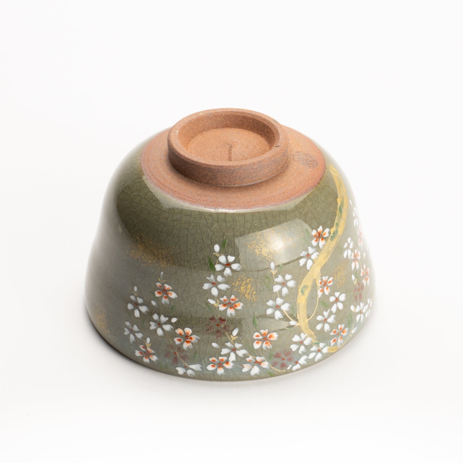 【清水烧】抹茶碗 灰釉内金 樱花 良二