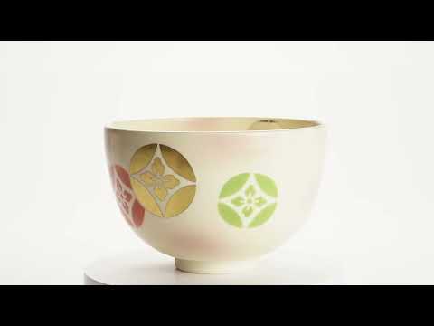 来自豪森的抹茶碗,以柔和的白色背景为底,饰以色彩缤纷的珐琅彩图案。