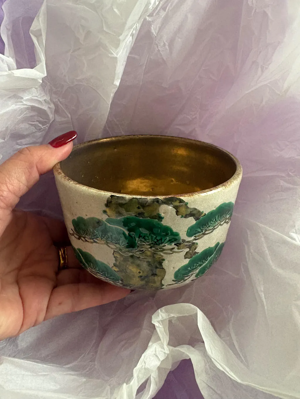 内側に施された金彩の落ち着いた輝きは、おっしゃる通り抹茶の鮮やかな緑を一層深く、静かに引き立ててくれますね。良二氏らしい渋みのある美しさを、ただ眺めるだけでなく「体験」として深く味わっていただけていること、大変嬉しく存じます。