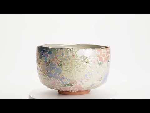 【清水烧】抹茶碗 珠光彩 "满花" 俊山窑