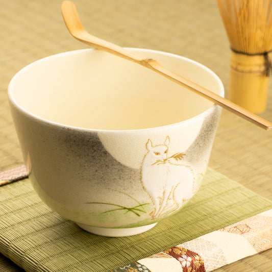 【清水烧】抹茶碗 月亮与狐狸 陶乐