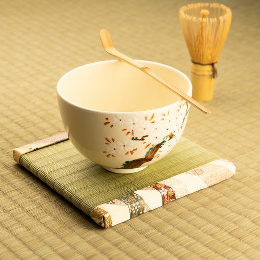 【清水烧】抹茶碗 樱花树 宝泉