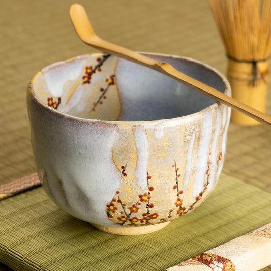【清水烧】抹茶碗 梅绘“明” 陶乐