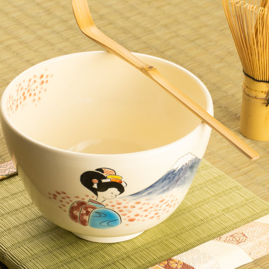 【清水烧】抹茶碗 舞妓与富士 海峰