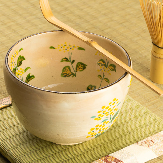 【清水烧】抹茶碗 刷毛目 油菜花 与平