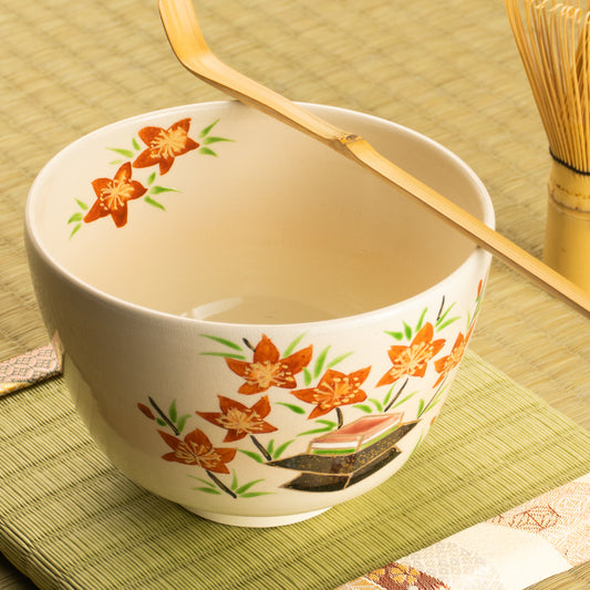在茶道仪式中,抹茶碗会根据场合而有所不同。例如,在正式场合,会避免使用过于华丽的装饰,黑色的乐烧或天目烧茶碗可能不太合适。而日常使用时,则可以随意选择。