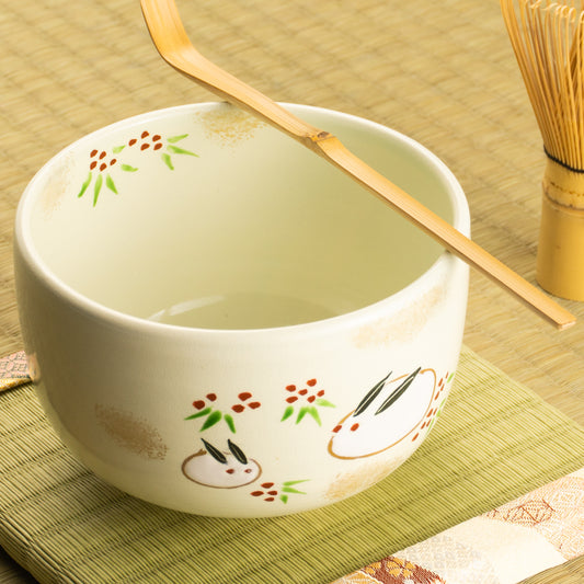 【清水烧】抹茶碗 萌黄《雪兔》 海峰
