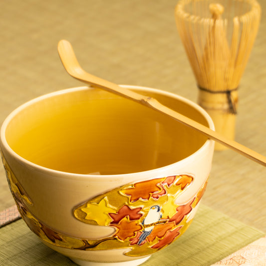【清水烧】抹茶碗 红叶与蓝仙鸟 一如