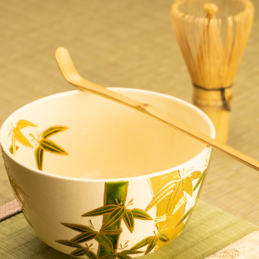【清水烧】抹茶碗 灰釉内金 "青竹" 良二