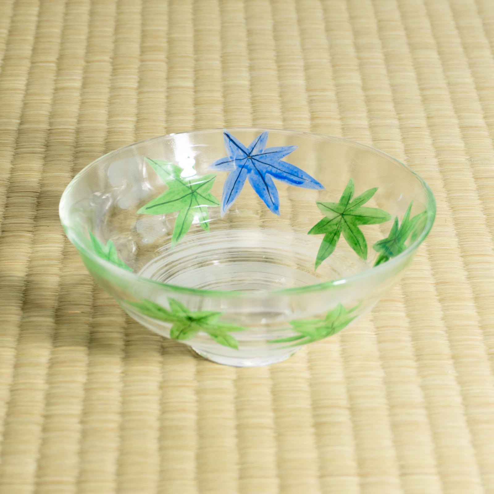 这些夏季抹茶碗由透明玻璃制成,每个碗都是单独绘制的。