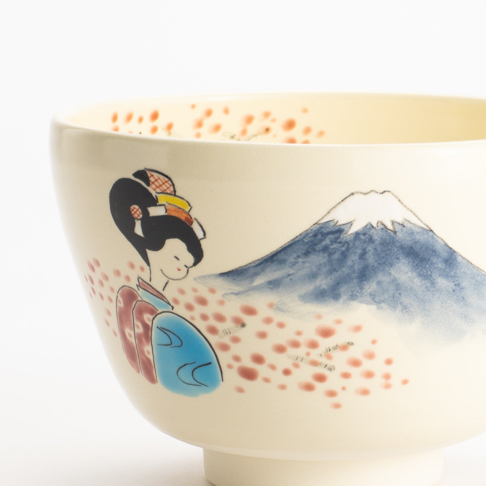 【清水烧】抹茶碗 舞妓与富士 海峰