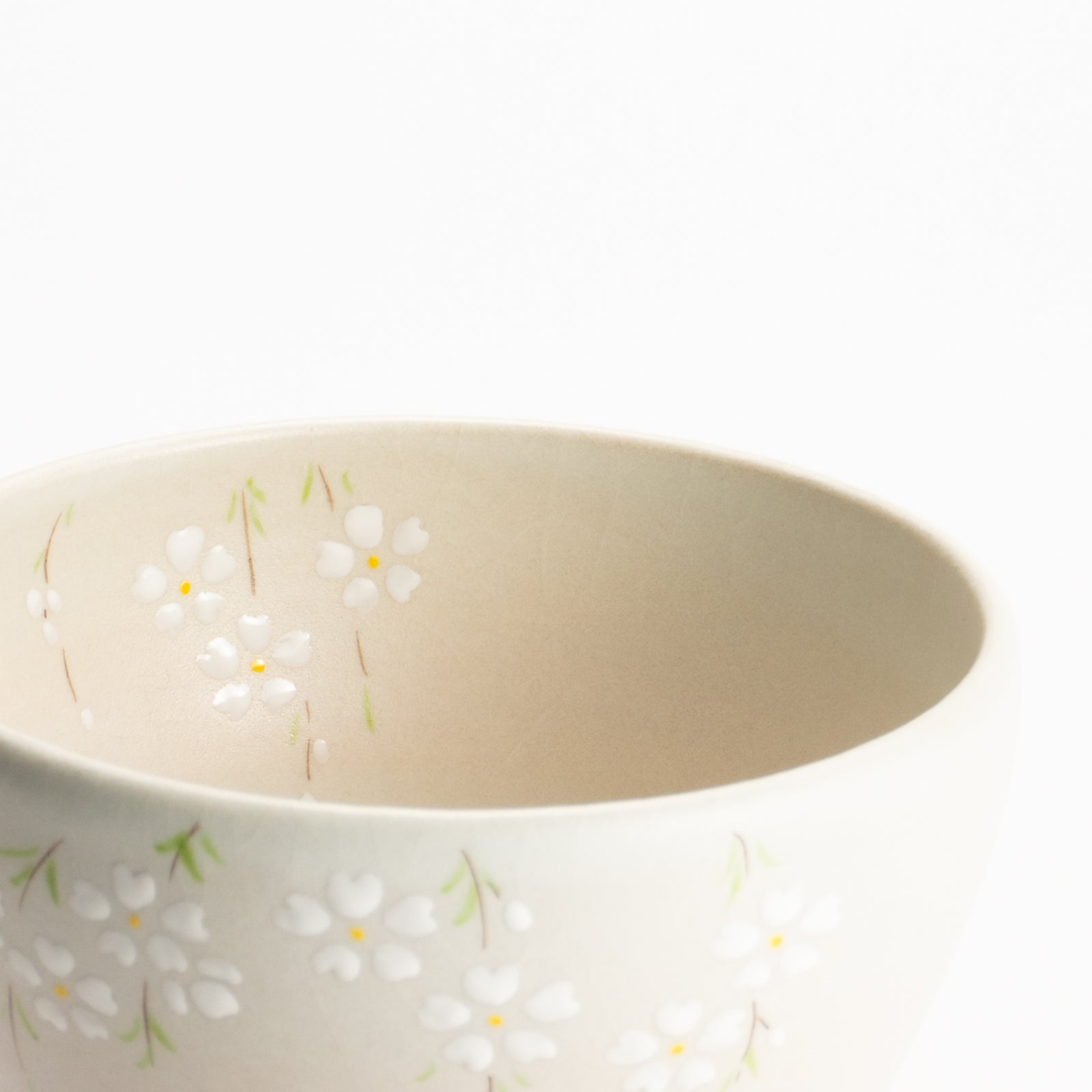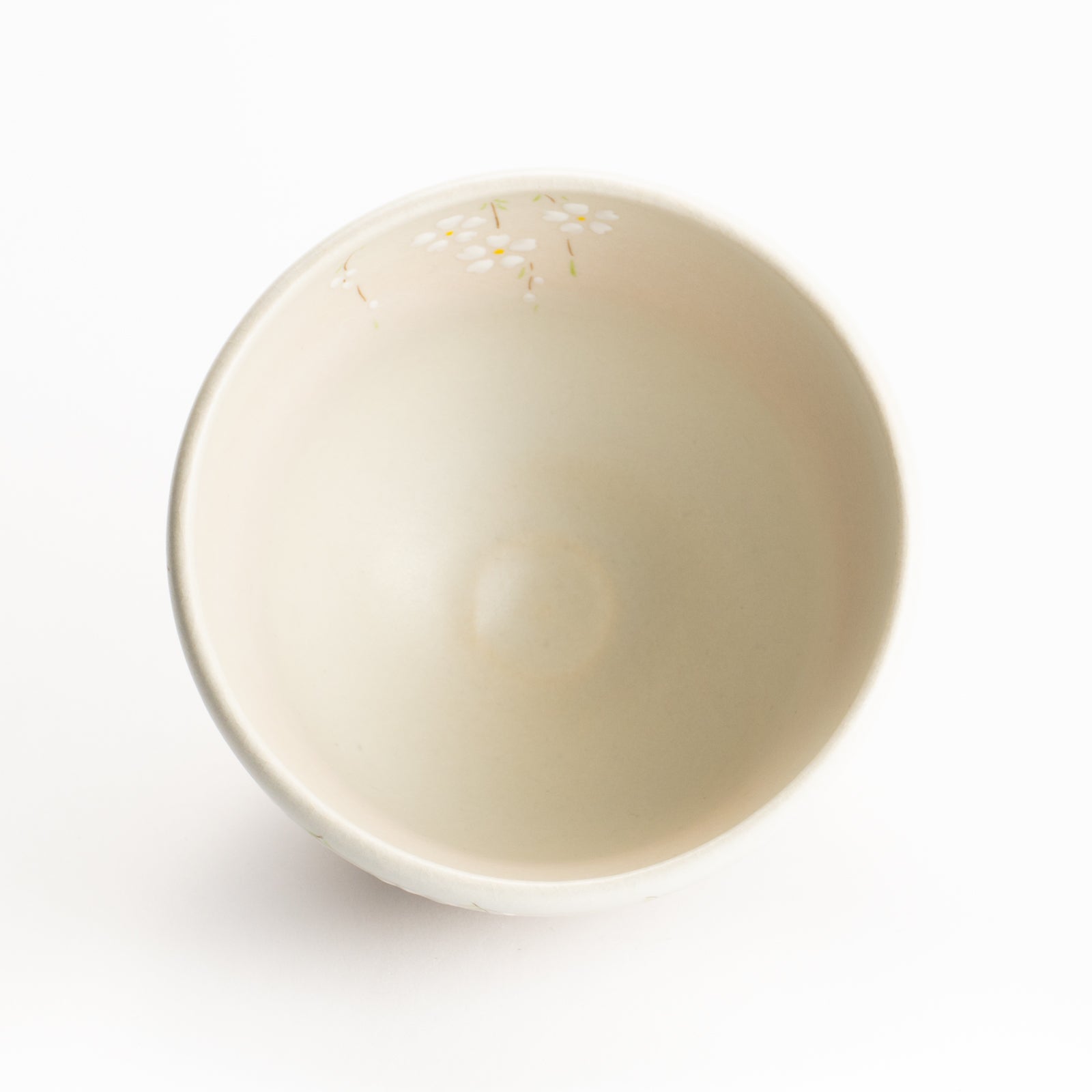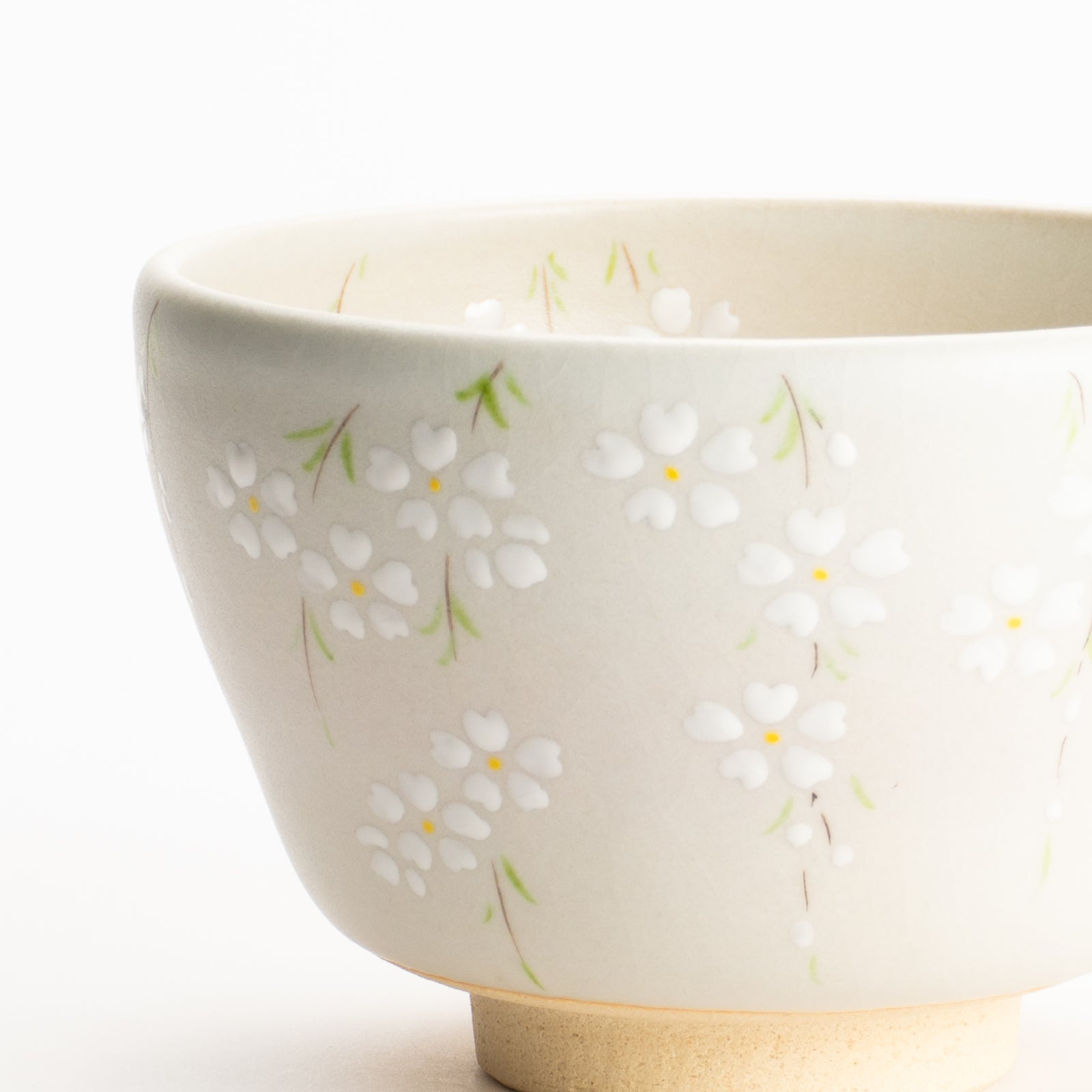 【清水烧】抹茶碗 稻草白釉 垂枝樱 海峰
