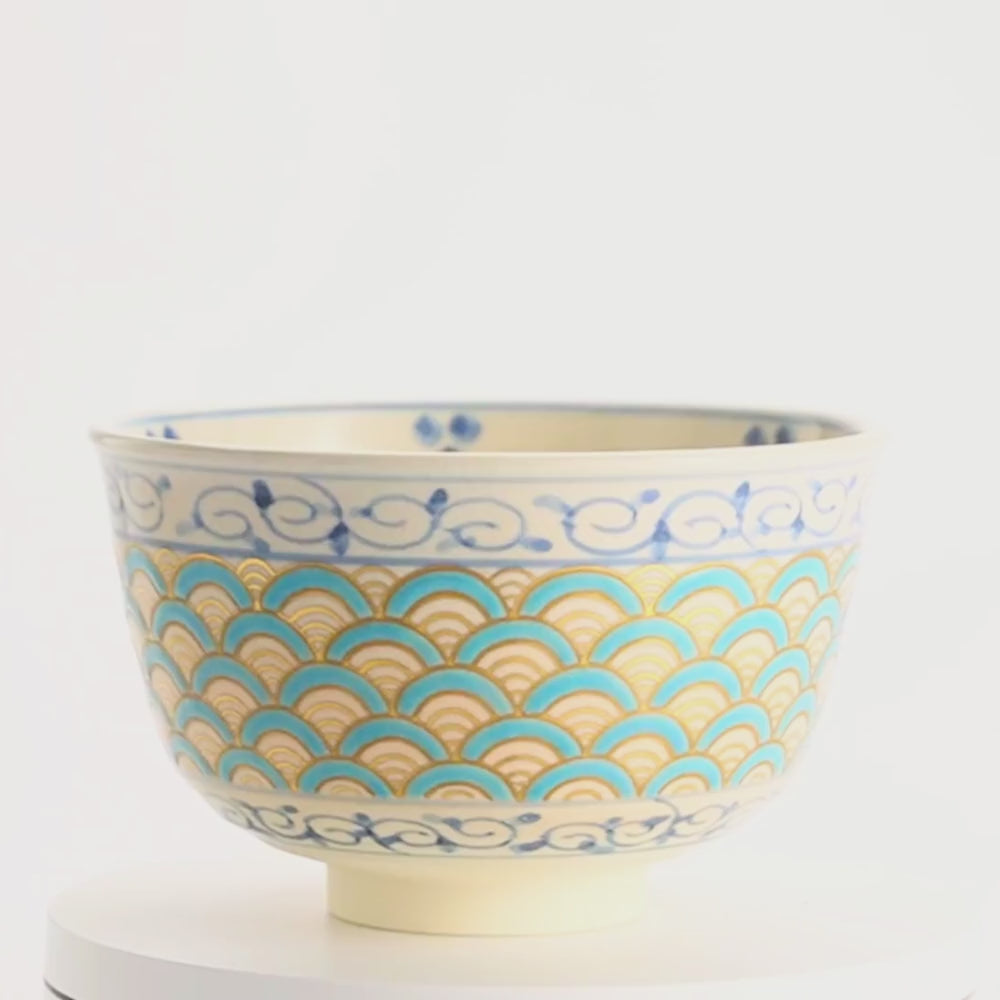 抹茶碗 青海波唐草紋 桐鳳